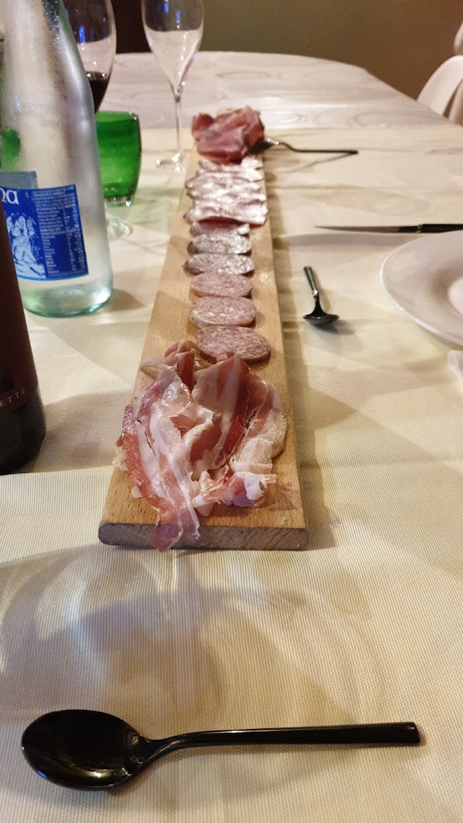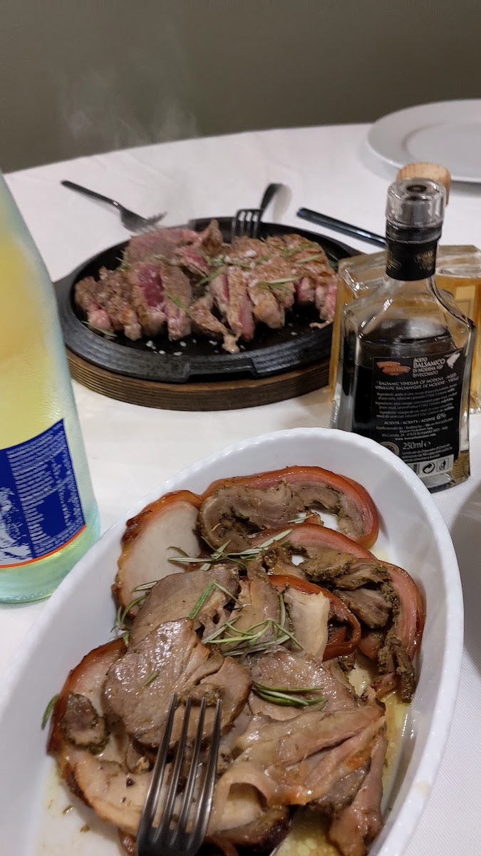 Il locale é stupendo, si trova su una collina da dove si può ammirare un panorama incantevole: da un lato la città di Fermo e da l'altro la valle del fermano fino al mare Adriatico, veramente suggestivo. All'interno non è da meno, molto curato nei particolari che richiamano un tipico agriturismo in mattonato e legno. Passiamo al menu: antipasto delizioso, si inizia con un assortimento di salumi di altissima qualità accompagnati con varie portate come polenta al mosto, verdure fresche marinate e formaggi del territorio. Come primo abbiamo preso i ravioli fatti mano assolutamente da provare e per secondo la tagliata di scottona, ottima, e maialino, squisito. Infine tiramisù della casa, top. Il tutto a soli 30 euro, top. Lo considero uno dei migliori posti dove magiare del fermano. Super consigliato!!!